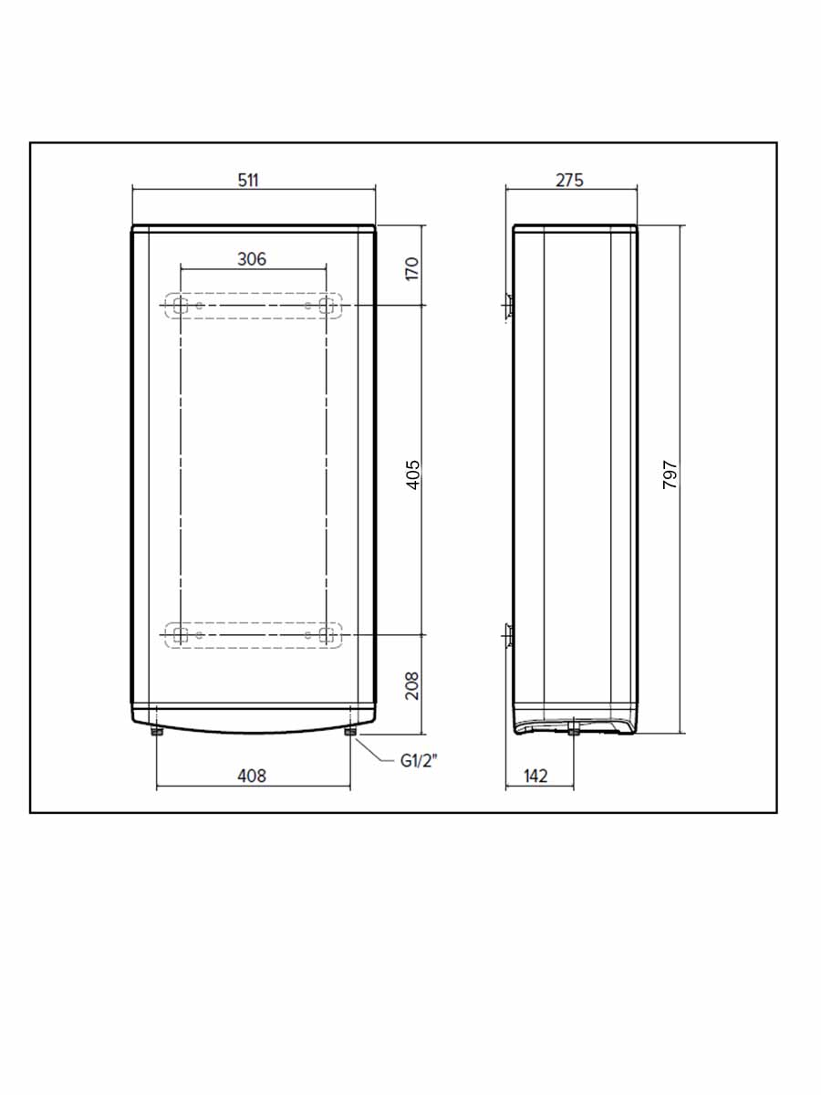 Dimenzije bojlera su 79,7x27,5x51,1cm, što ga čini kompaktnim i lako uklopivim u manje prostore.