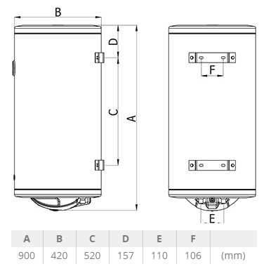 Sa dimenzijama od 42x90x42 cm i težinom od 28 kg, bojler se lako uklapa u većinu kupatila, pružajući efikasno rešenje za grejanje vode.