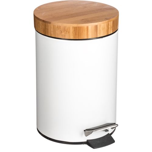 Kanta za smeće, zapremine 3L, izrađena je od metala, u beloj boji. Poklopac je izrađen od bambusa i otvara se pritiskom na pedalu.