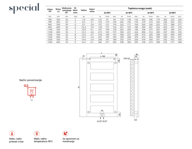 Snaga grejanja (ΔT60) zavisi od izabranog formata i kreće se od 224 do 672 W, što ga čini dobrim izborom i kao dopunski izvor toplote, ali i kao praktičan sušač za svakodnevnu rutinu.