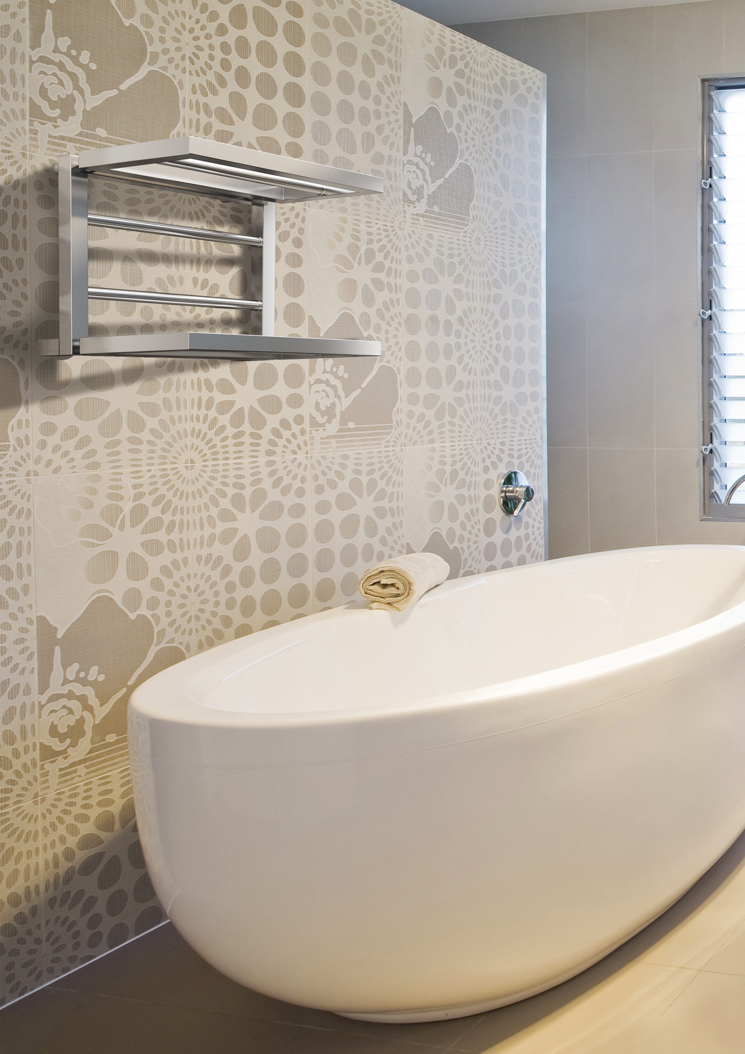 Odlično izgleda uz monohromne zidove, sitnije dekore ili suptilne teksture, a posebno lepo se uklapa u kupatilima sa prirodnim elementima poput drveta, svetlog kamena i toplih neutralnih nijansi.