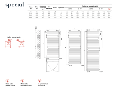 Snaga zavisi od dimenzije i kreće se od 508 do 963 W (ΔT 60°C), što ga čini odličnim rešenjem i za manja kupatila, ali i za prostore gde želite jači učinak grejanja tokom cele sezone.