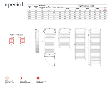 Snaga se kreće od 378 do 980 W (ΔT 60°C), što ga čini odličnim izborom i za manja kupatila, ali i za prostore gde želite jače grejanje tokom hladnijih dana.