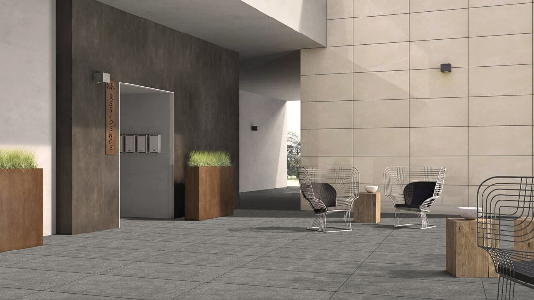 Podne pločice u ovoj nijansi sive posebno su zahvalne za spoljne prostore, jer lako podnose promene svetla tokom dana i dobro se uklapaju sa nameštajem od metala, drveta ili ratana.
