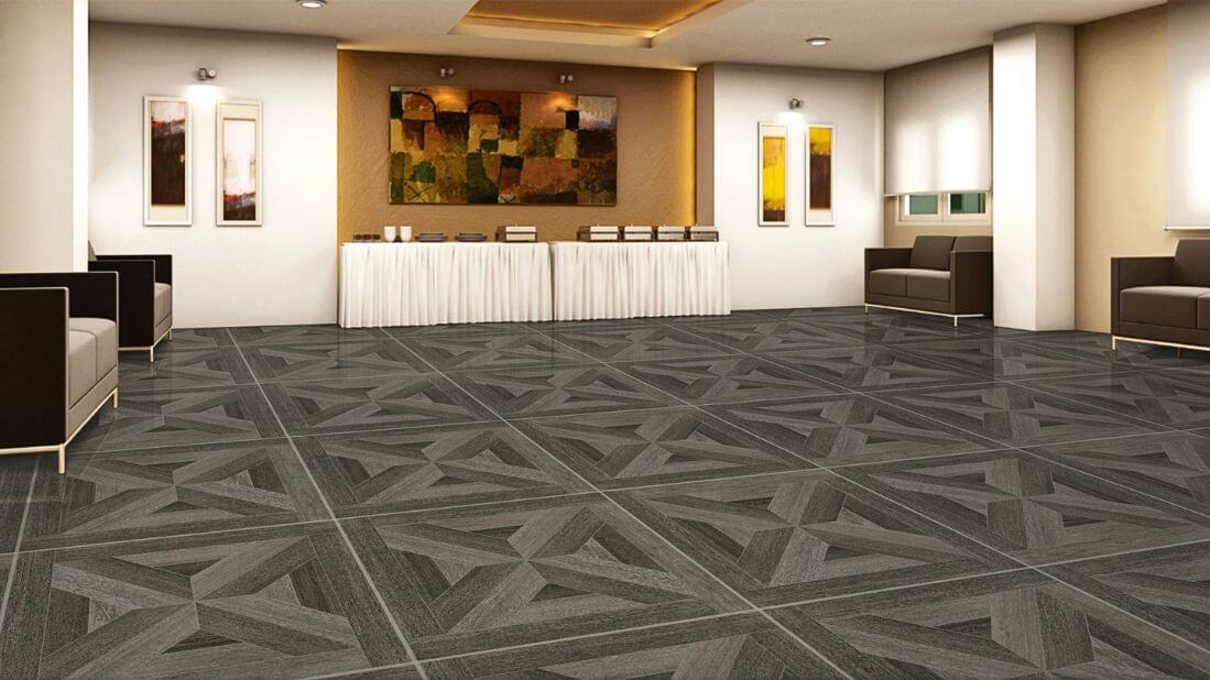 Kod pločica u tamnom drvenom dezenu i dekorativnoj, geometrijskoj kompoziciji kao što je Beldevere Wenge 60×60cm, boja fugne ima presudnu ulogu u vizuelnom doživljaju prostora.