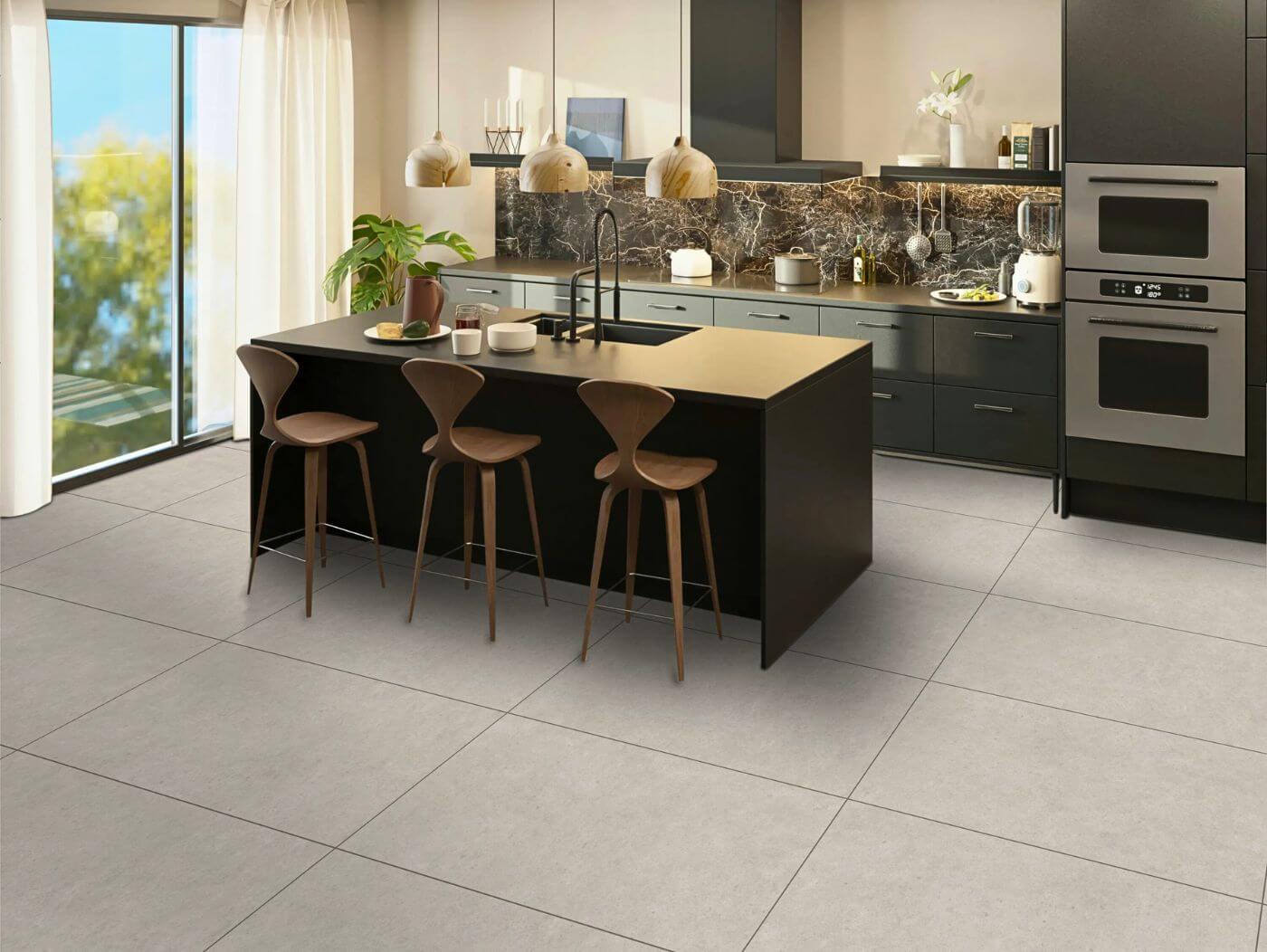 ➡️ Velike pločice i monohromni dizajn kuhinja