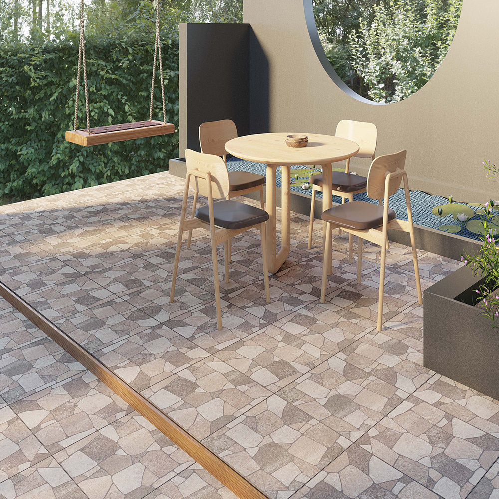 Ako želite terasu koja deluje prijatno i prirodno već na prvi pogled, Chester Brown 50x50 cm donosi topliju interpretaciju kamenog dezena.