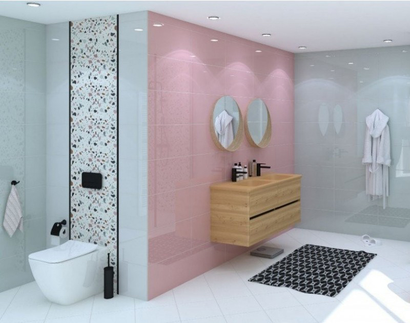 Ove zidne pločice odišu čistoćom, jednostavnošću i suptilnim sjajem, stvarajući prostor koji deluje uredno, prozračno i uvek sveže.