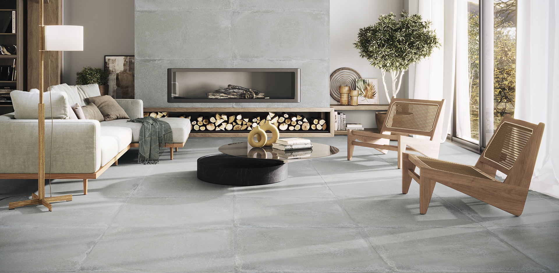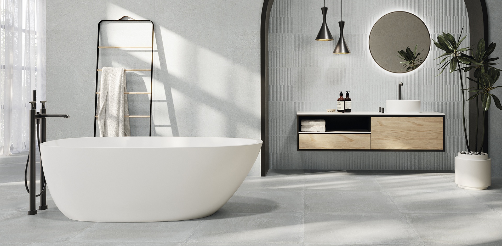 Svojom neutralnom sivom nijansom i velikim formatom, ove pločice su savršena osnova za moderne monohromne enterijere.