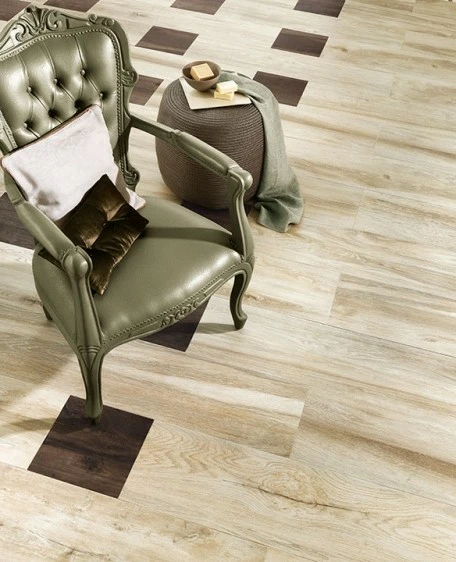 Kod pločica u drvenom dezenu, fuga utiče na to da li će površina delovati kao mirna, ujednačena celina ili kao ritam dasaka sa jasnijim linijama.
