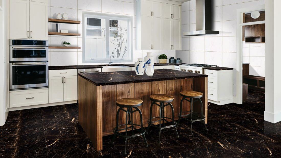 Ako uređujete kuhinju u kojoj pod igra važnu ulogu, Golden Black je odličan izbor za stvaranje dinamičnog, otvorenog i prijatnog prostora.
