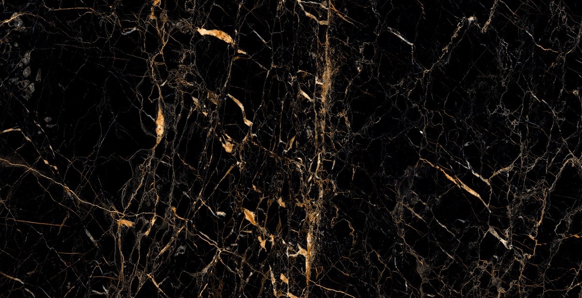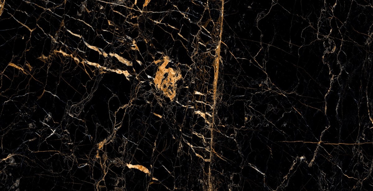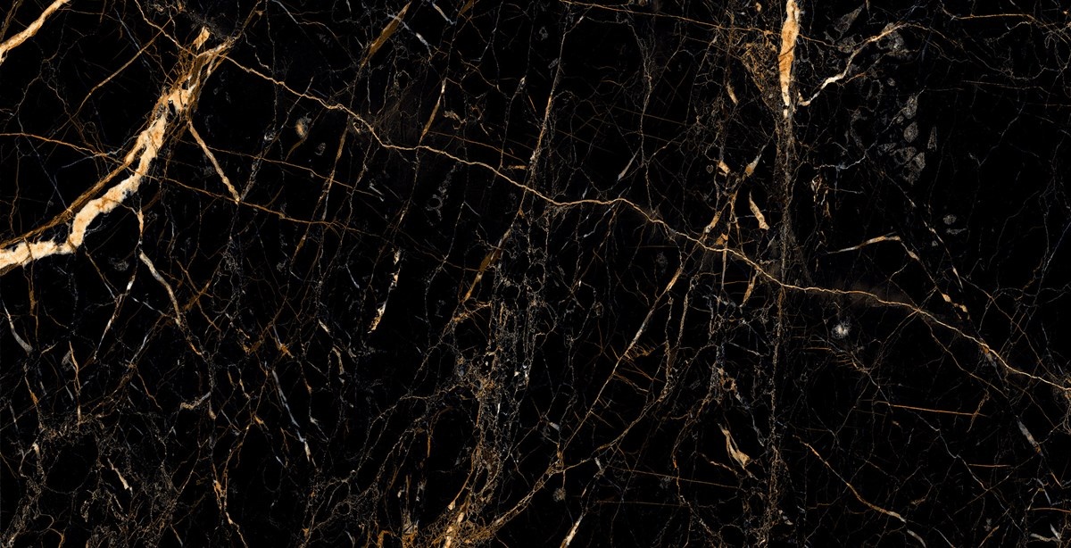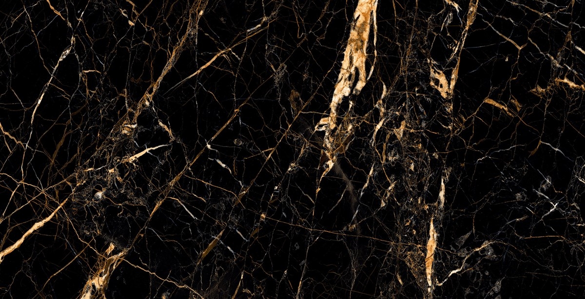 Golden Black podna pločica u formatu 60x120cm unosi potpuno drugačiju atmosferu u dom: tamna mermerna podloga, isprepletena bogatim zlatnim i bakarnim venama, odmah stvara osećaj dubine i topline u prostoru.