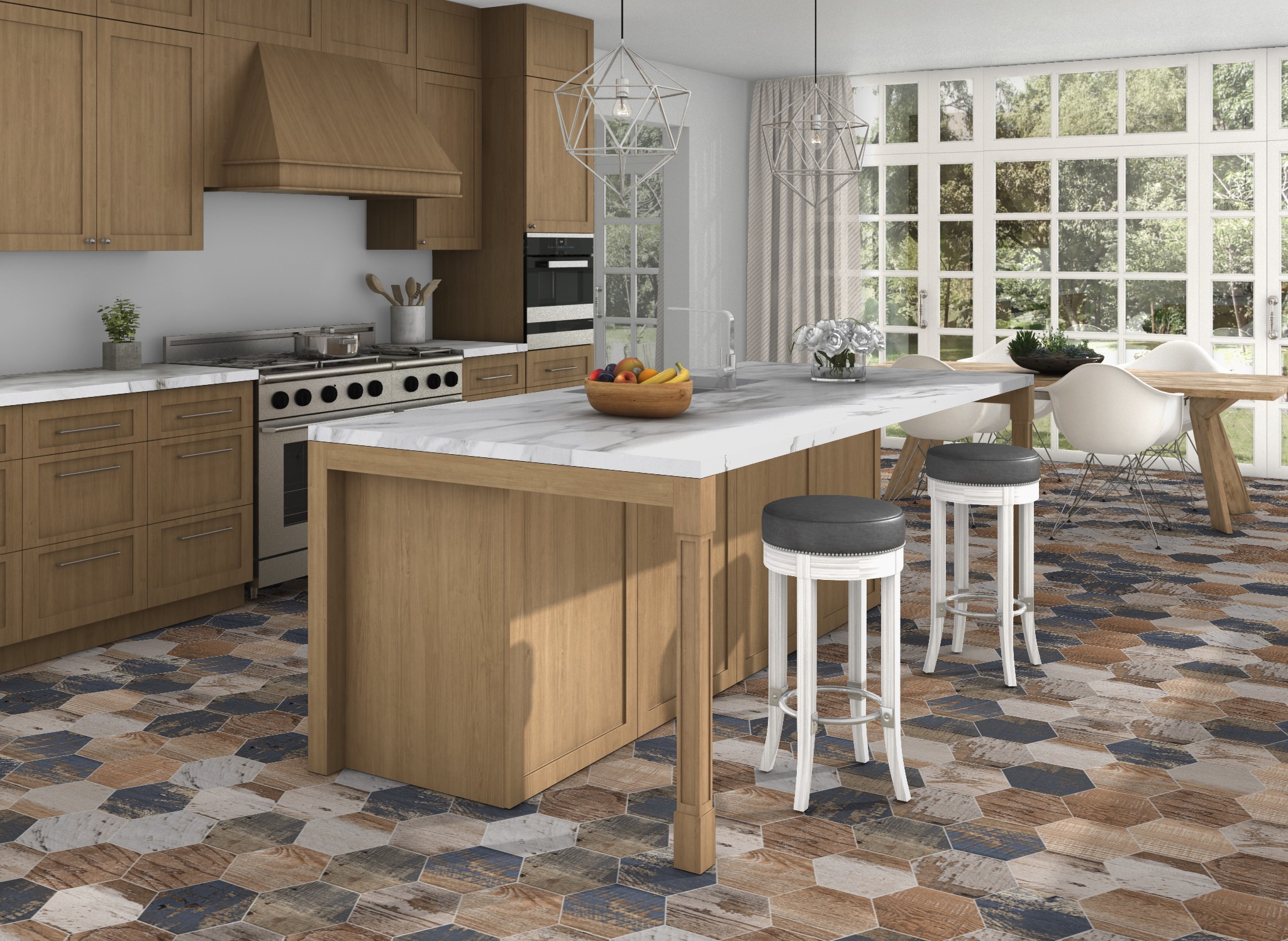 Zahvaljujući heksagon obliku i velikom broju lica (34), ove pločice stvaraju dinamičnu, ali uravnoteženu celinu.