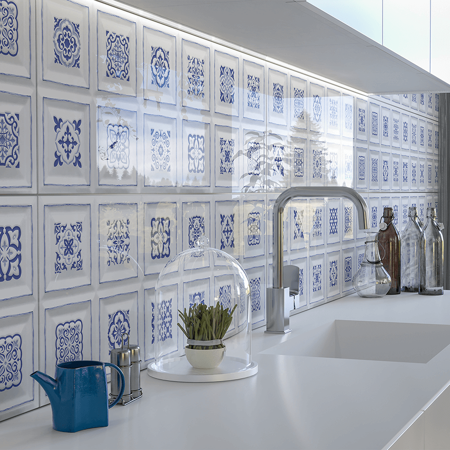 Bilo da se koristi kao glavni dizajnerski akcenat ili suptilan dodatak, plava boja ovih pločica obogaćuje enterijer autentičnim detaljem.