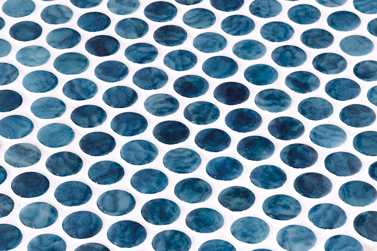 Penny Arrecife Blue je stakleni mozaik koji svojom kružnom formom i vibrantnom plavom paletom unosi osećaj pokreta, dubine i svežine u svaki prostor.
