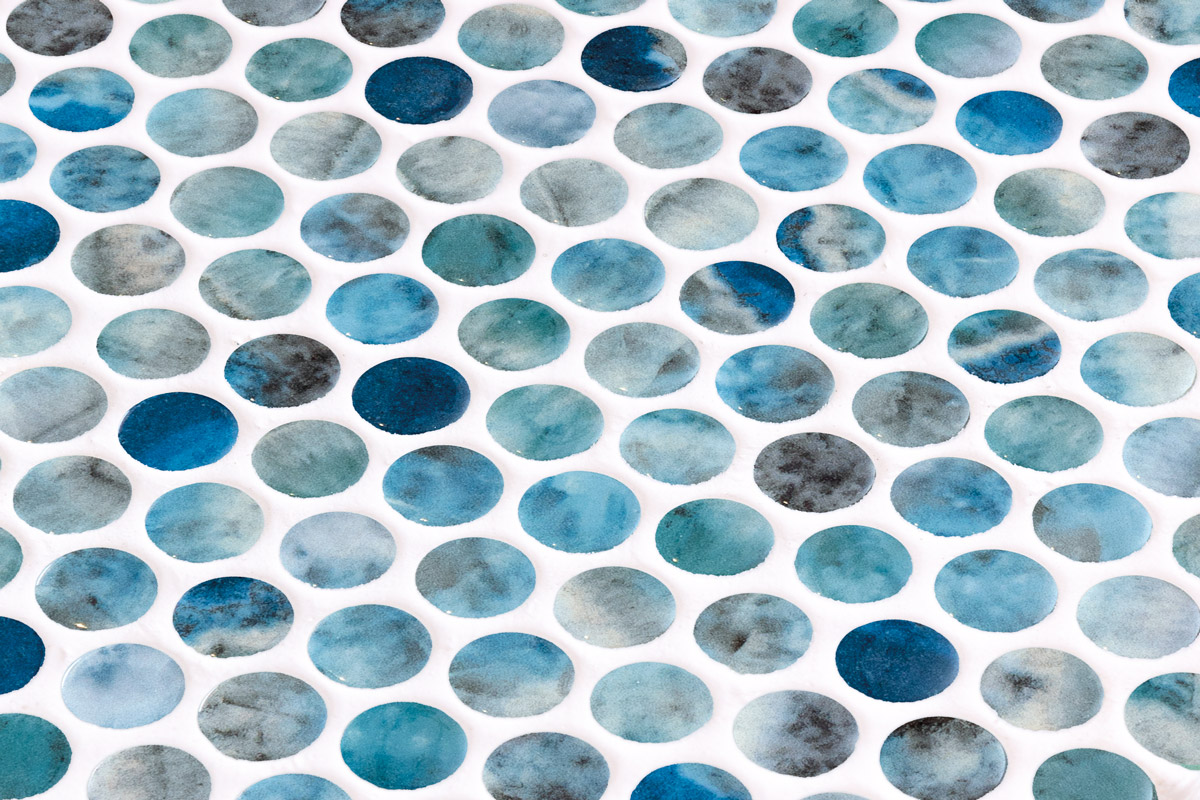 Penny Kara Blue je mozaik koji kombinuje bogate nijanse plave sa sjajnom površinom i blagim mermernim efektom.