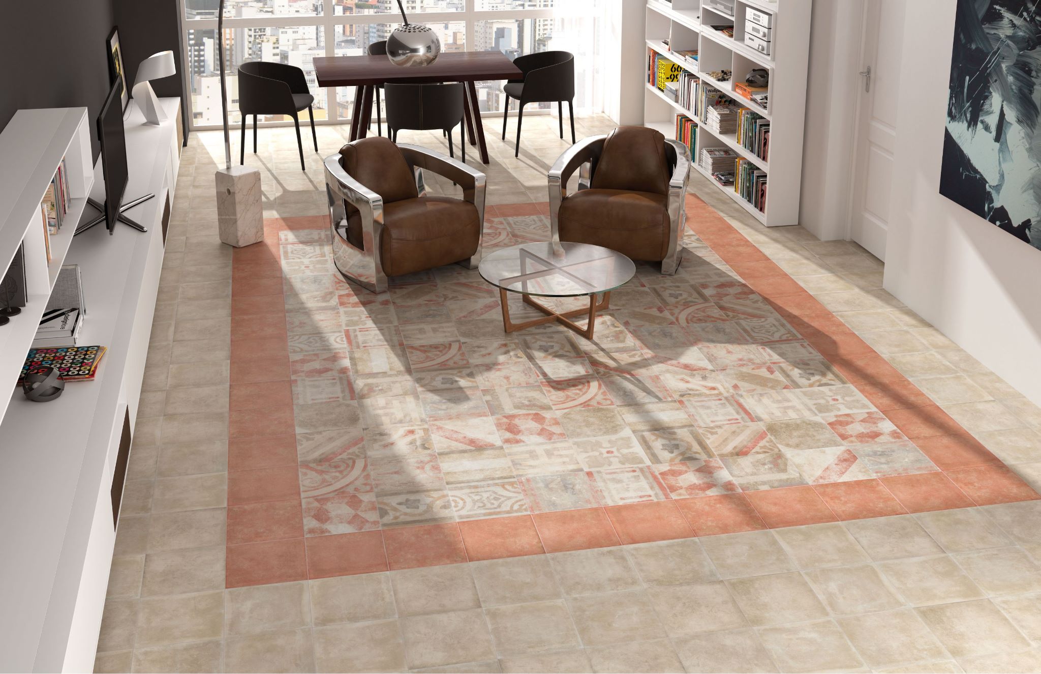 Kombinacijom jednobojne osnove i uzoraka u retro stilu, lako se formiraju bordure, centralni kvadrati ili celokupne površine koje ostavljaju snažan vizuelni utisak.