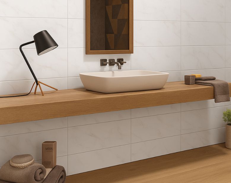 U modernim kupatilima unosi čist, minimalistički izraz, dok u tradicionalnijim enterijerima služi kao tihi kontrast koji osvežava prostor.