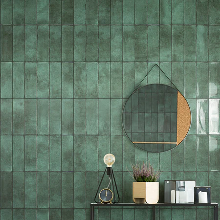 Njihova intenzivna zelena nijansa sa blagim prelazima tonova stvara efekat prirodne dinamike na zidu i osećaj povezanosti sa prirodom, dok sjajna završna obrada reflektuje svetlost i dodatno osvežava prostor.