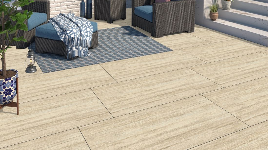 TRV Travertino Classic je pločica visoke gustine i otpornosti, namenjena za dugotrajnu upotrebu na otvorenom.