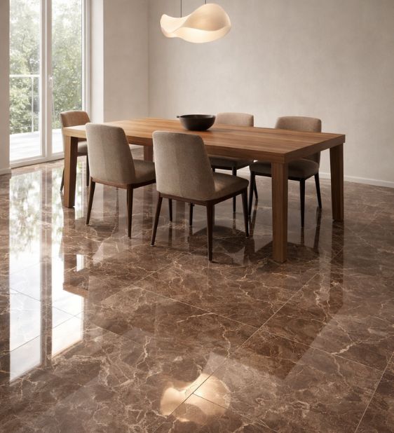 Čokoladno braon – stvara skladan, dubok ton poda i naglašava prirodni karakter mermernog dezena.