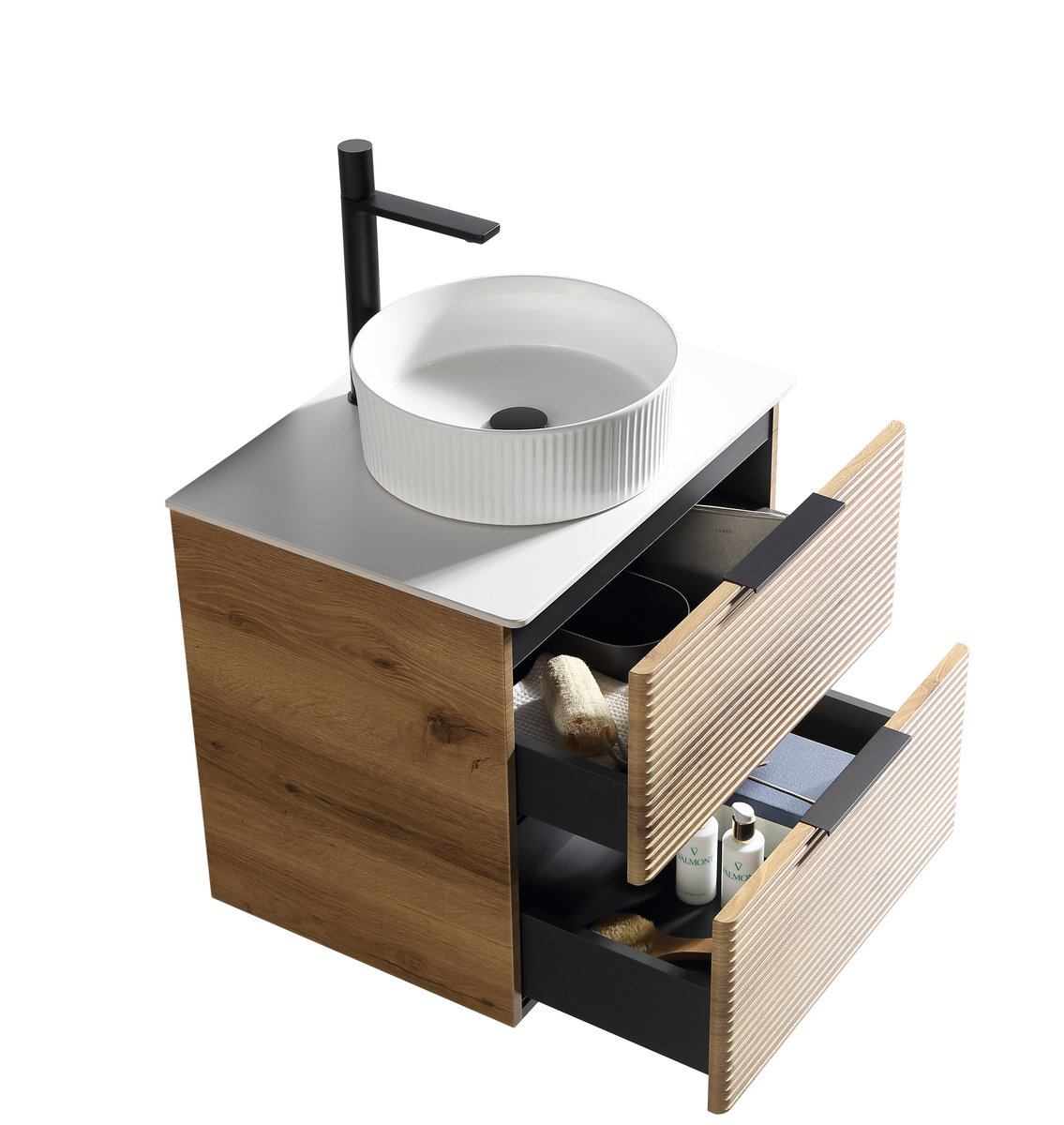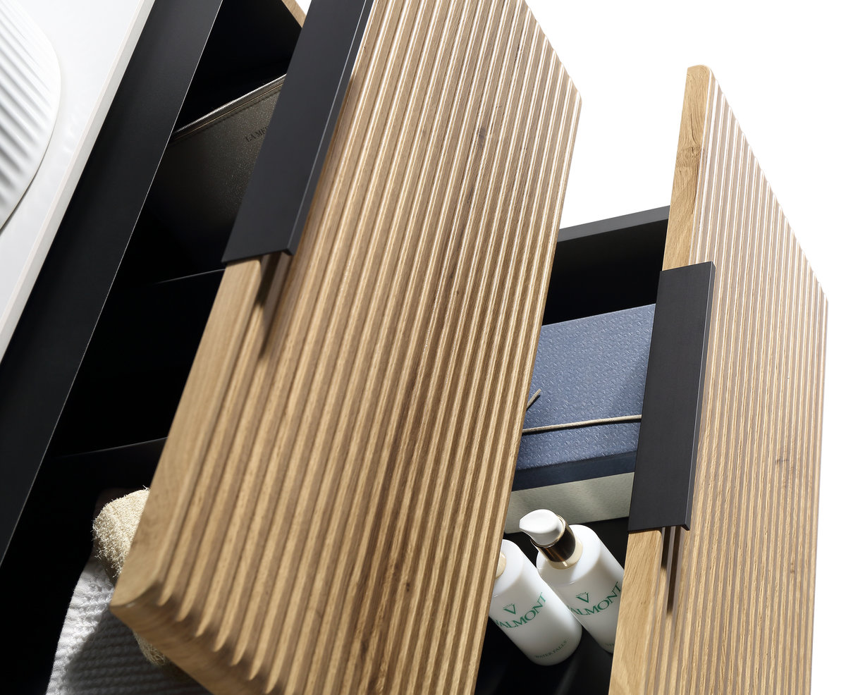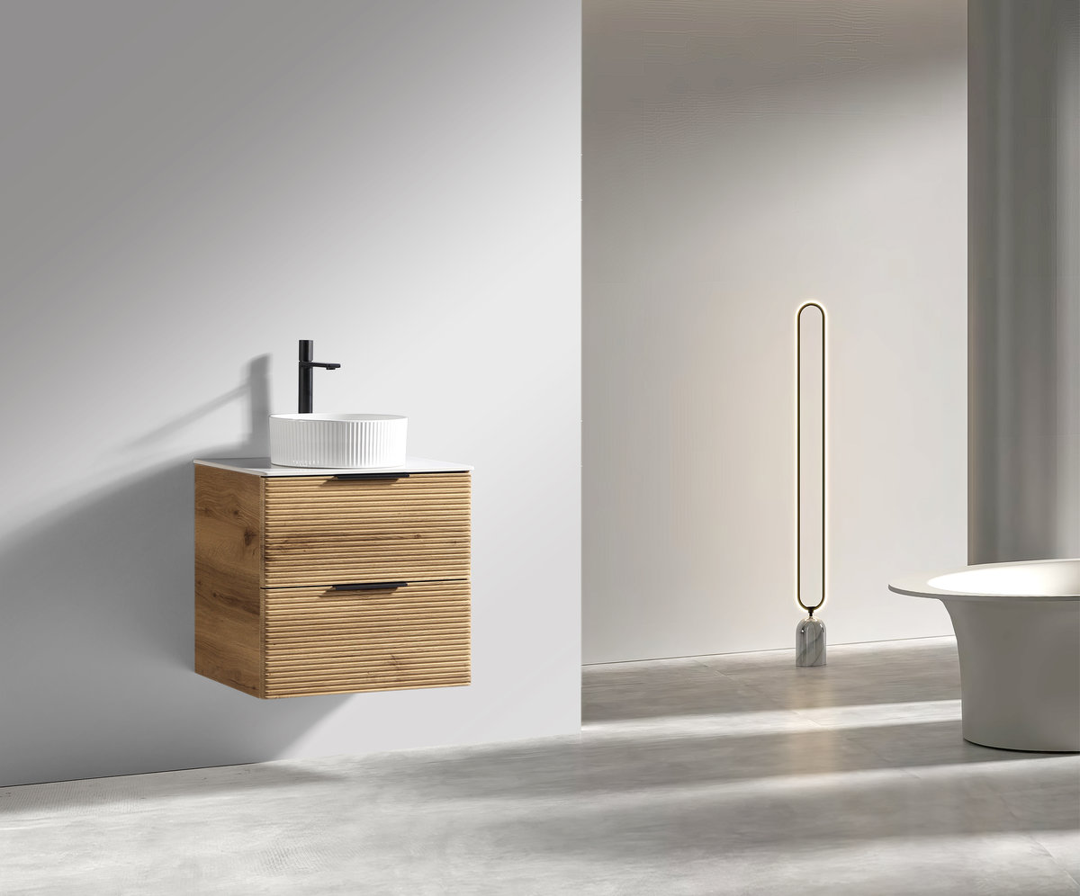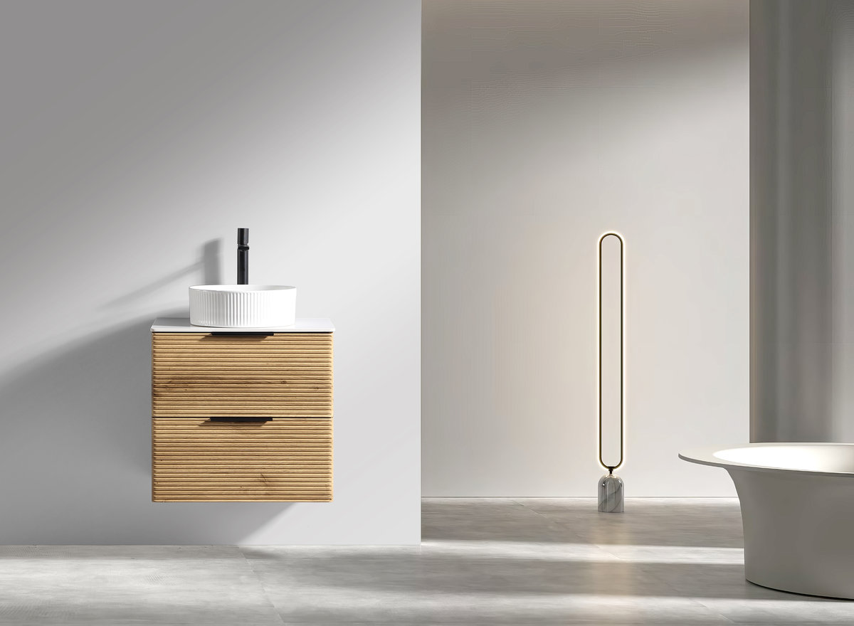 Ormarić Antalya 60 Stream Gold Oak je upravo takav – kompaktan, ali vizuelno izražen komad koji unosi toplinu i jasnoću u uređenje kupatila.