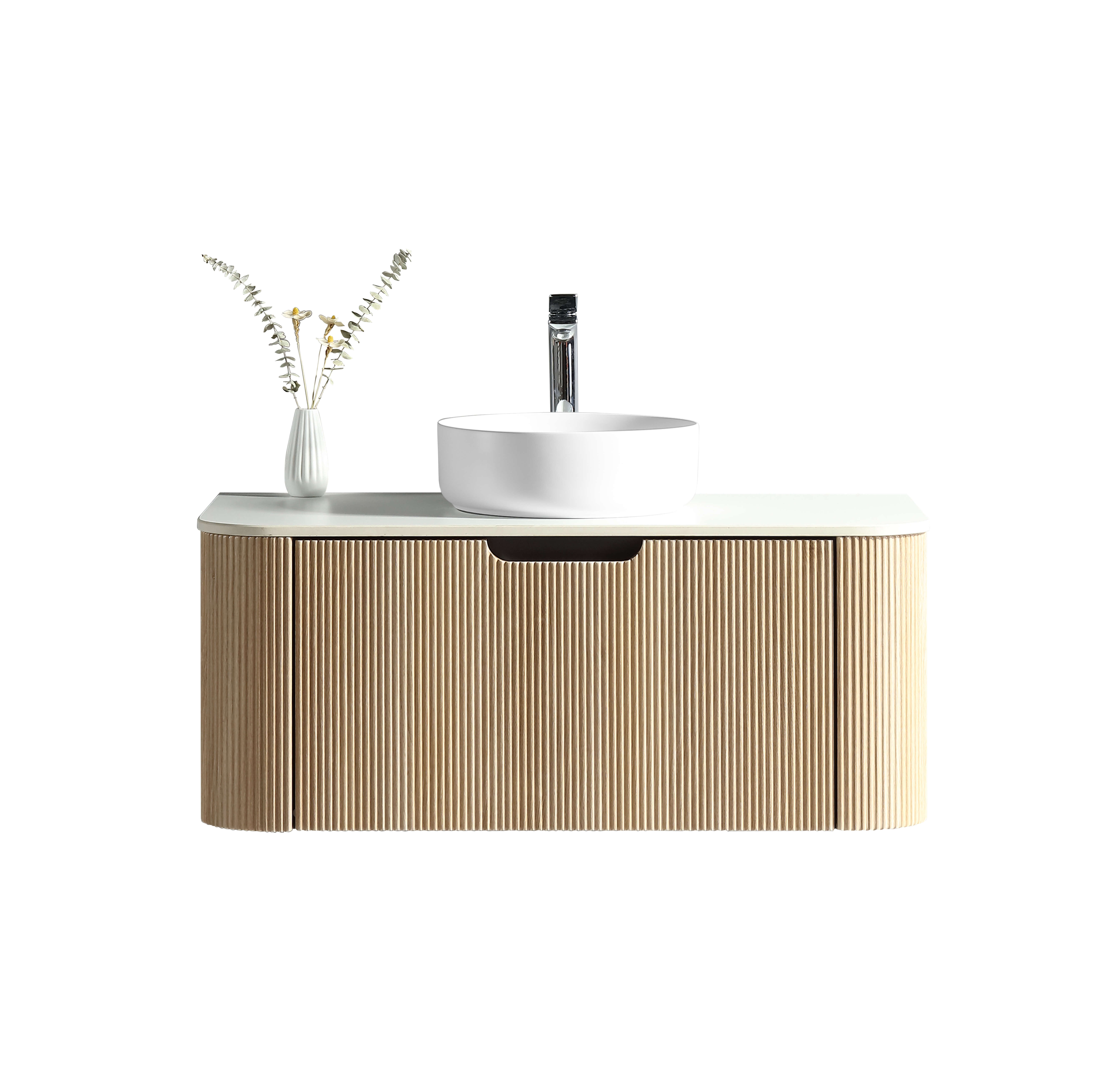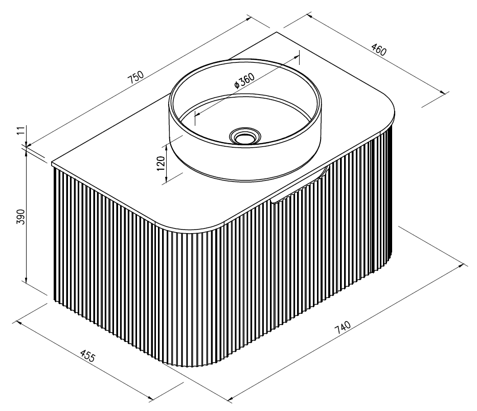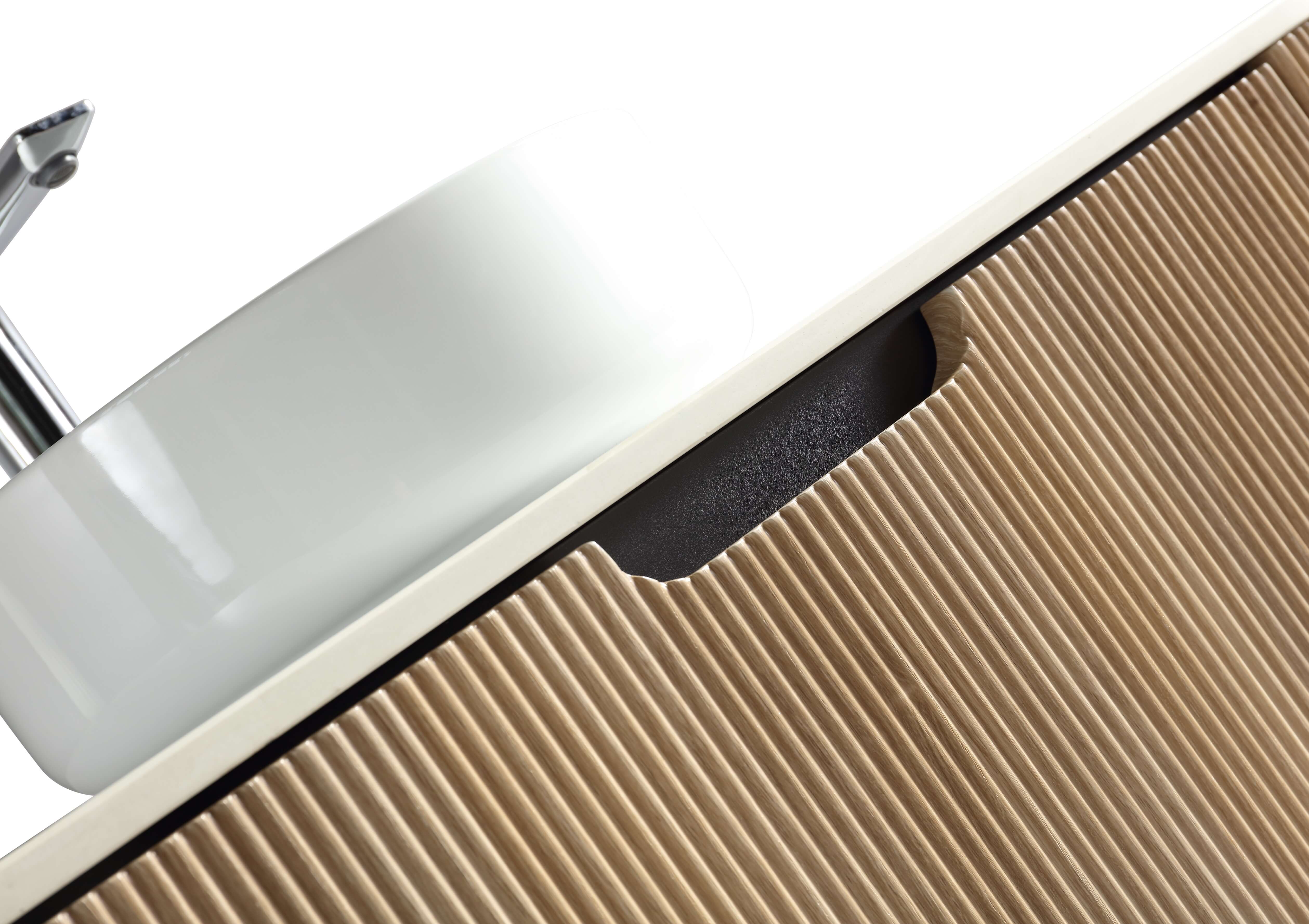 Elegant 75 ormarić Relief Oak privlači pažnju već na prvi pogled zahvaljujući vertikalnim rebrima na frontu i blago zaobljenim ivicama.