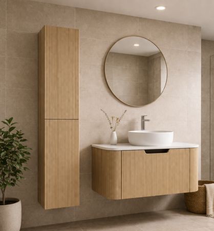 Njegova topla nijansa prirodnog hrasta unosi dozu prirodnosti i ugodnosti u kupatilski ambijent, dok čisti oblici i funkcionalna forma odgovaraju savremenim enterijerima.