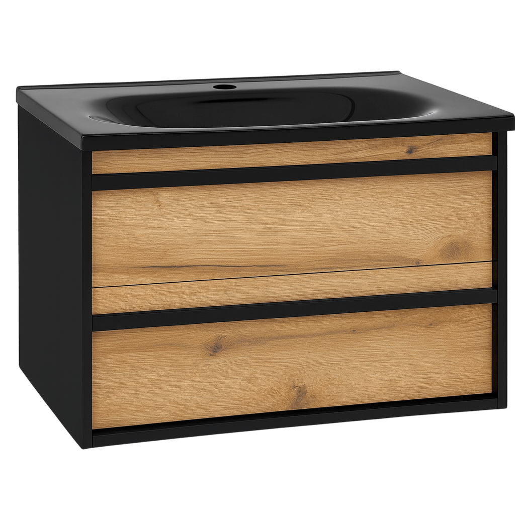 Spoj elegancije crne boje i topline drveta pretvoren je u model Euridika 75 Oliva/Black – moderan kupatilski ormarić sa umivaonikom koji će uneti prefinjen karakter u svaki prostor.