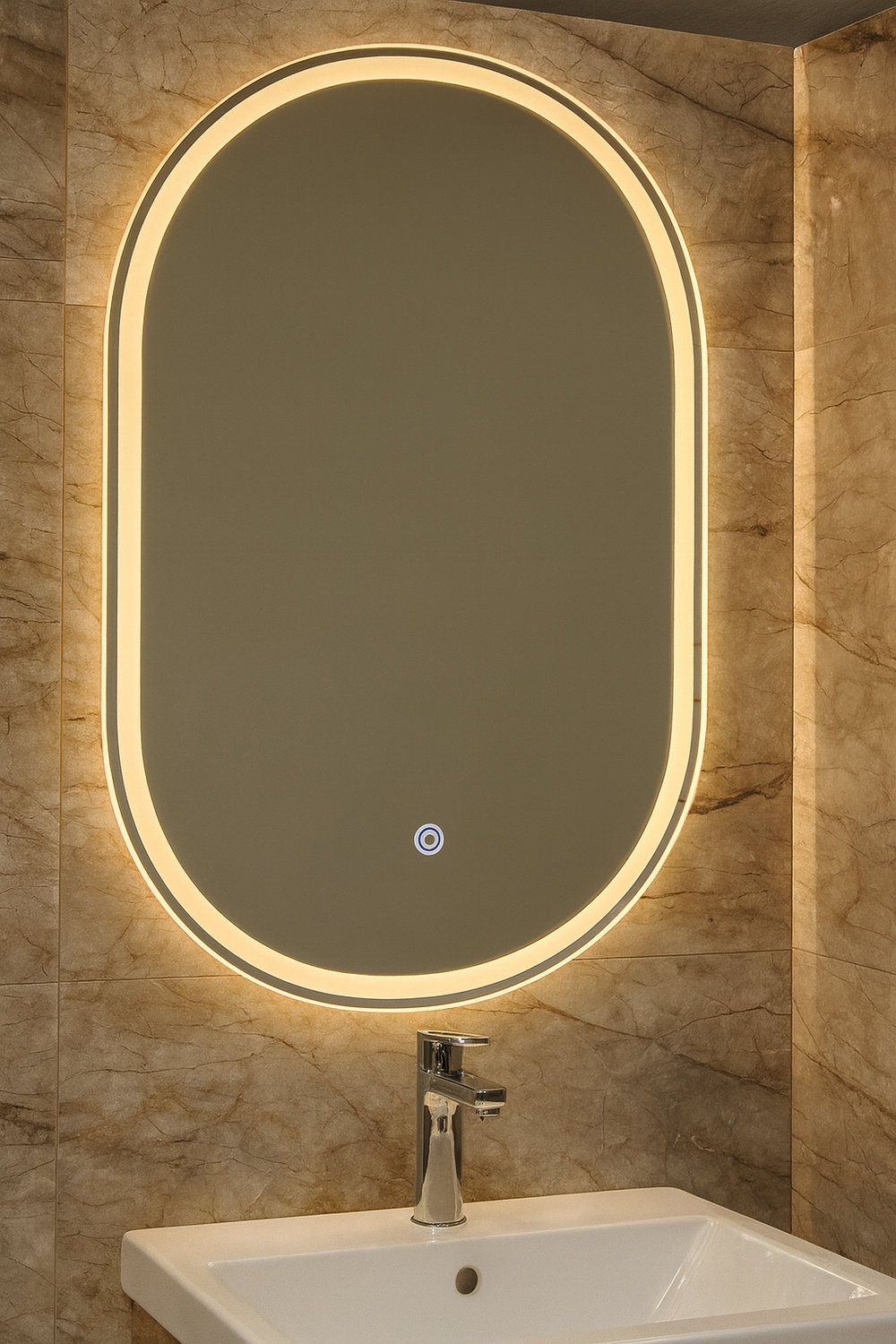 LED ogledalo Stuttgart dimenzija 60x90cm odlikuje se prepoznatljivim oblikom sa zaobljenim ivicama i toplim LED osvetljenjem koje stvara prijatnu atmosferu.