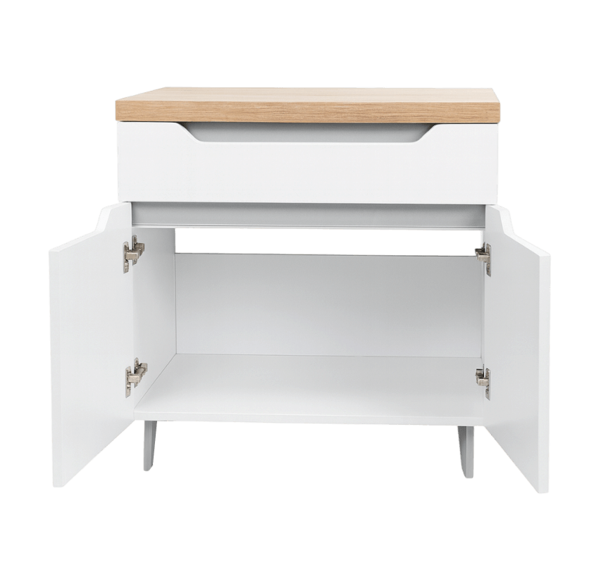 Zahvaljujući svojoj širini od 76cm, predstavlja odličnu osnovu za ugradnju nadgradnog lavaboa, omogućavajući vam da prostor prilagodite sopstvenom ukusu i potrebama.