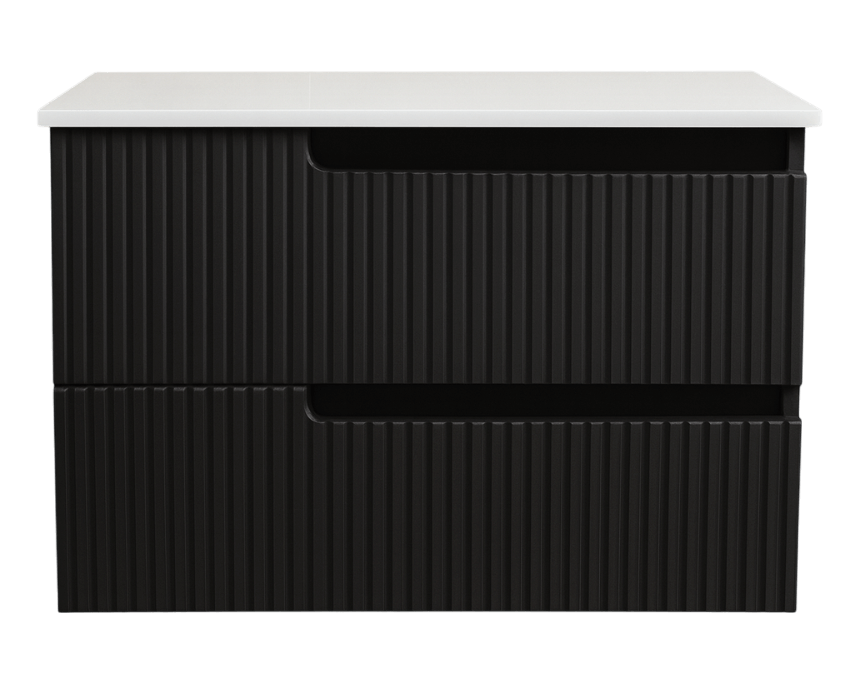 Kombinacija bele ploče i crnog fronta sa izraženim teksturama daje snažan vizuelni utisak, dok kompaktnost dimenzija od 75cm širine čini ovaj model idealnim rešenjem i za srednje velike prostore.