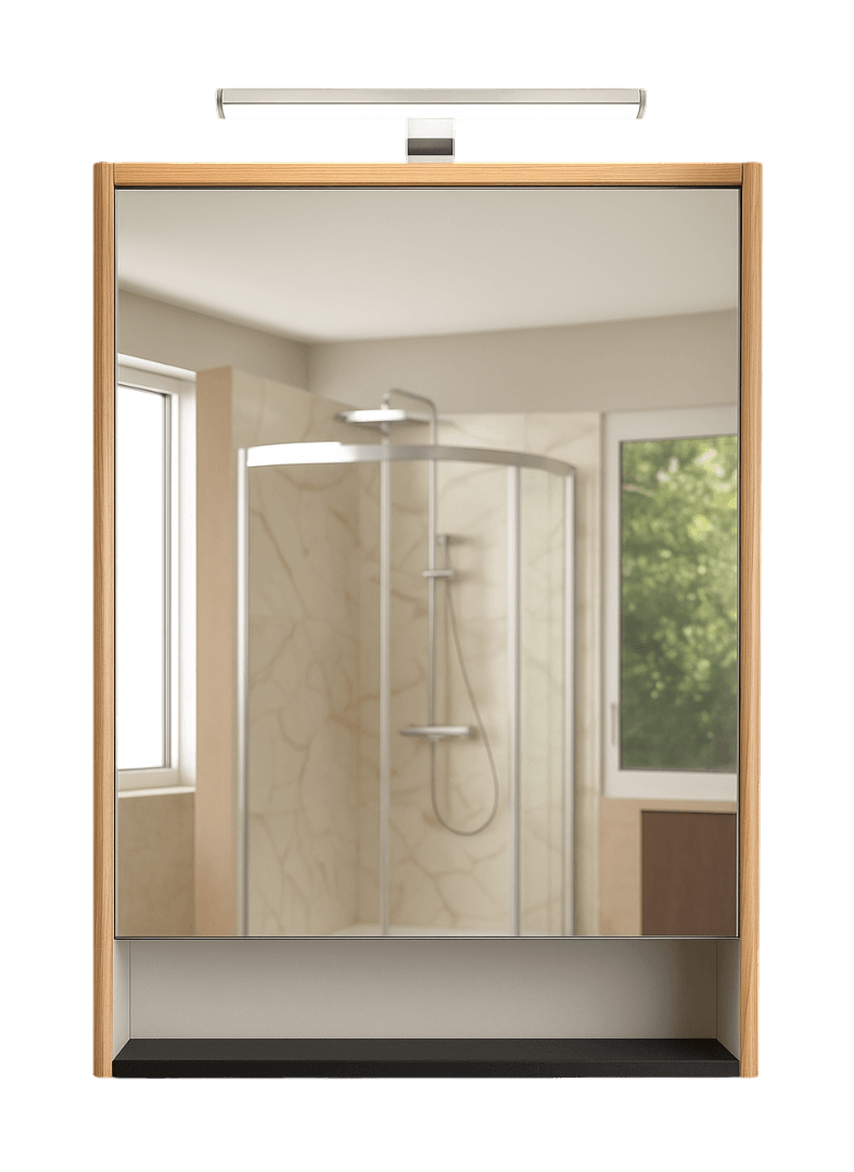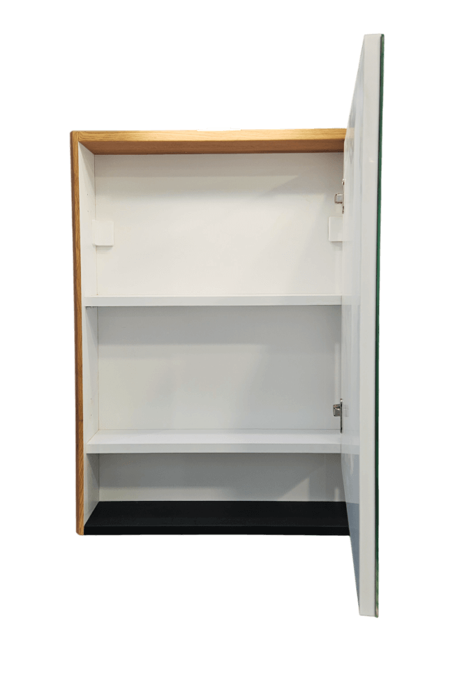 Iza vrata sa ogledalom krije se unutrašnji prostor sa dve police, idealan za kozmetiku, sredstva za higijenu ili lekove.