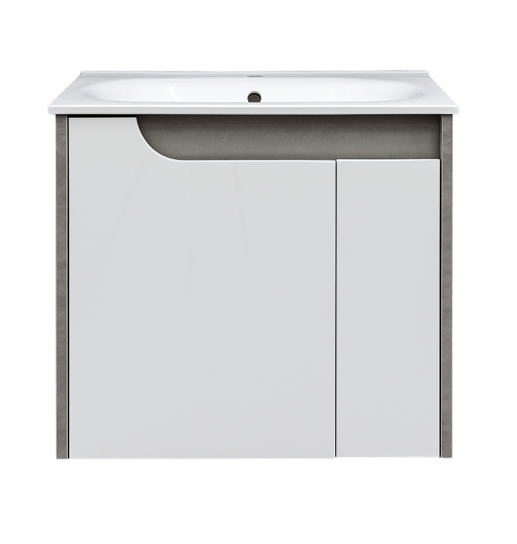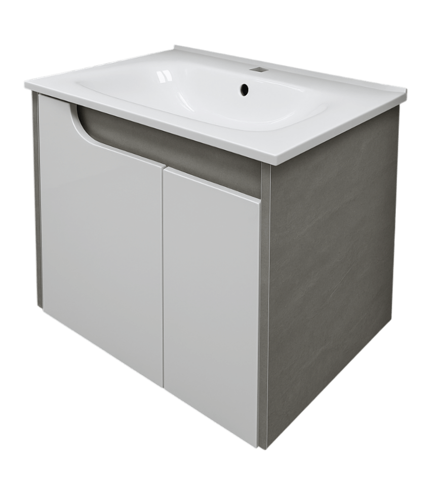Ormarić sa umivaonikom Euridika Glina 65cm donosi jednostavne linije i sofisticiran kontrast između sjajnog belog fronta i korpusa u sivoj nijansi.