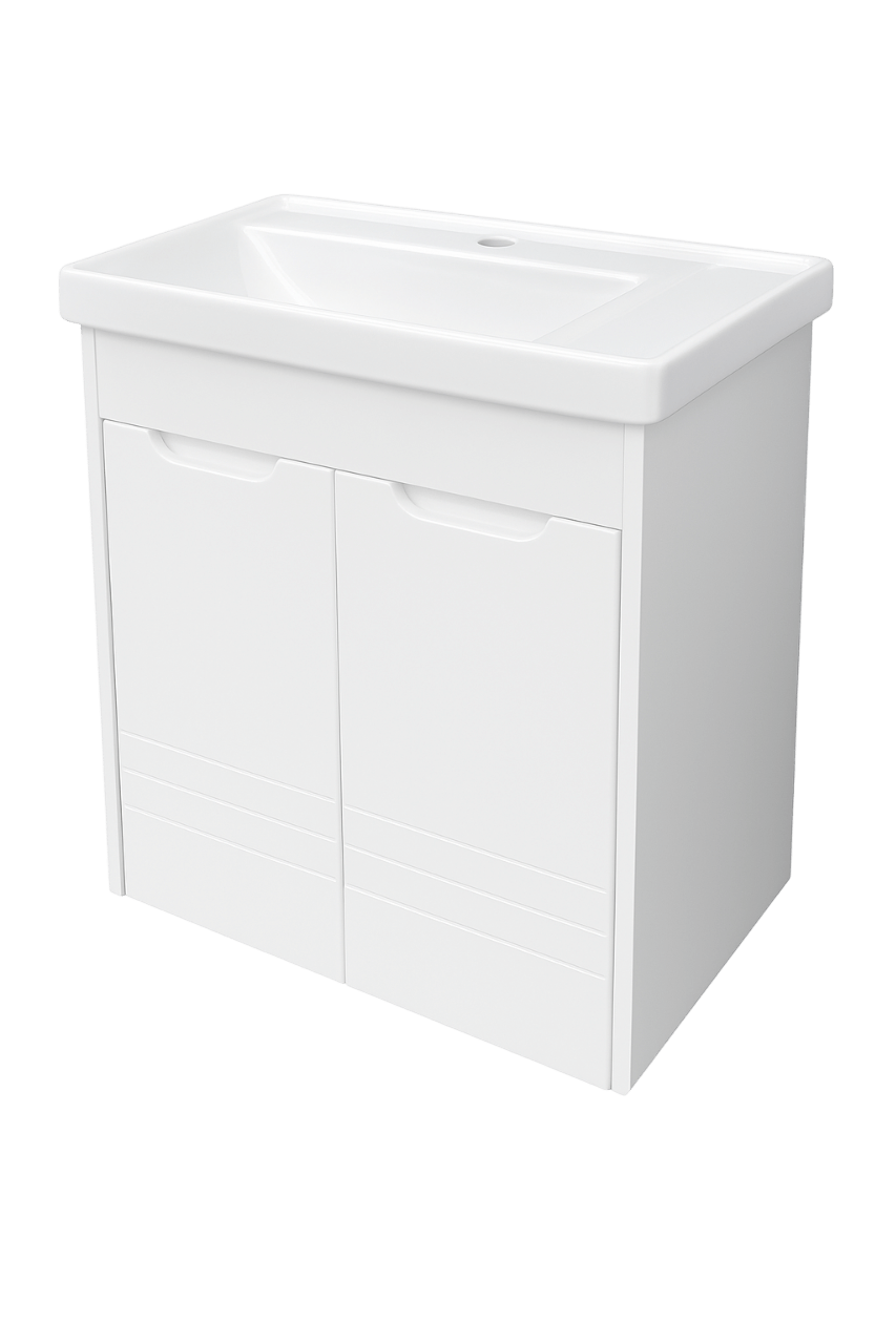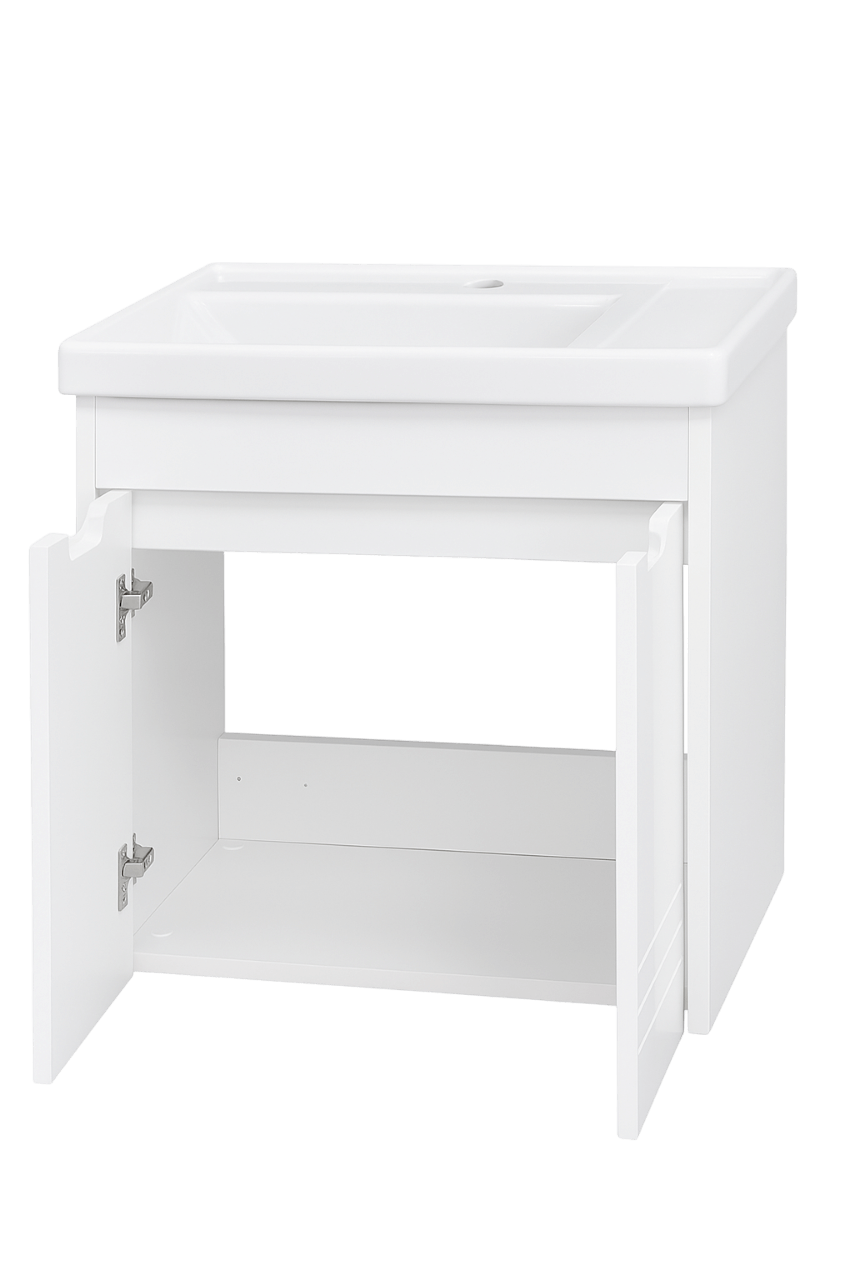 Ormarić sa umivaonikom Flora Bela 60cm osmišljen je tako da u malom prostoru ponudi maksimalnu funkcionalnost i estetsku jednostavnost.