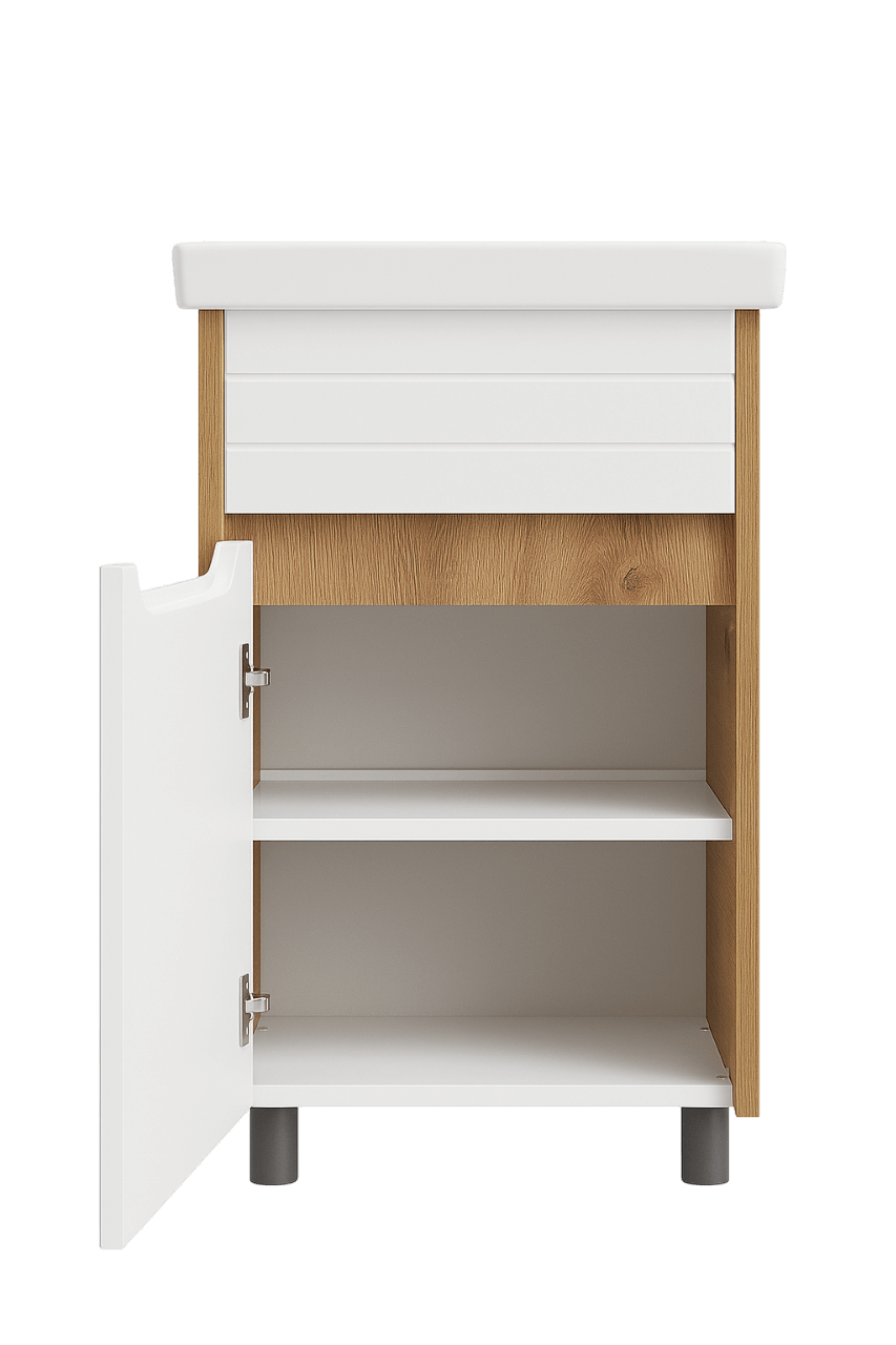 Ormarić sa umivaonikom Hana 50cm predstavlja idealan izbor za manja kupatila u kojima je svaki centimetar važan.