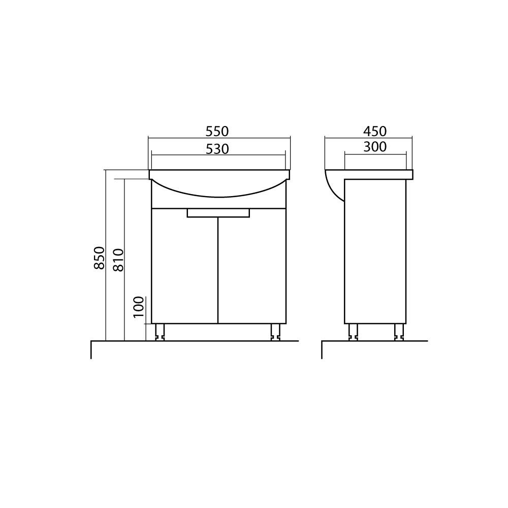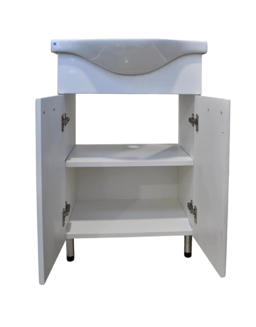 Ormarić sa umivaonikom širine 55cm pruža funkcionalnost u kompaktnoj formi, nudeći dovoljno prostora za odlaganje, ali bez narušavanja slobode kretanja u prostoru.