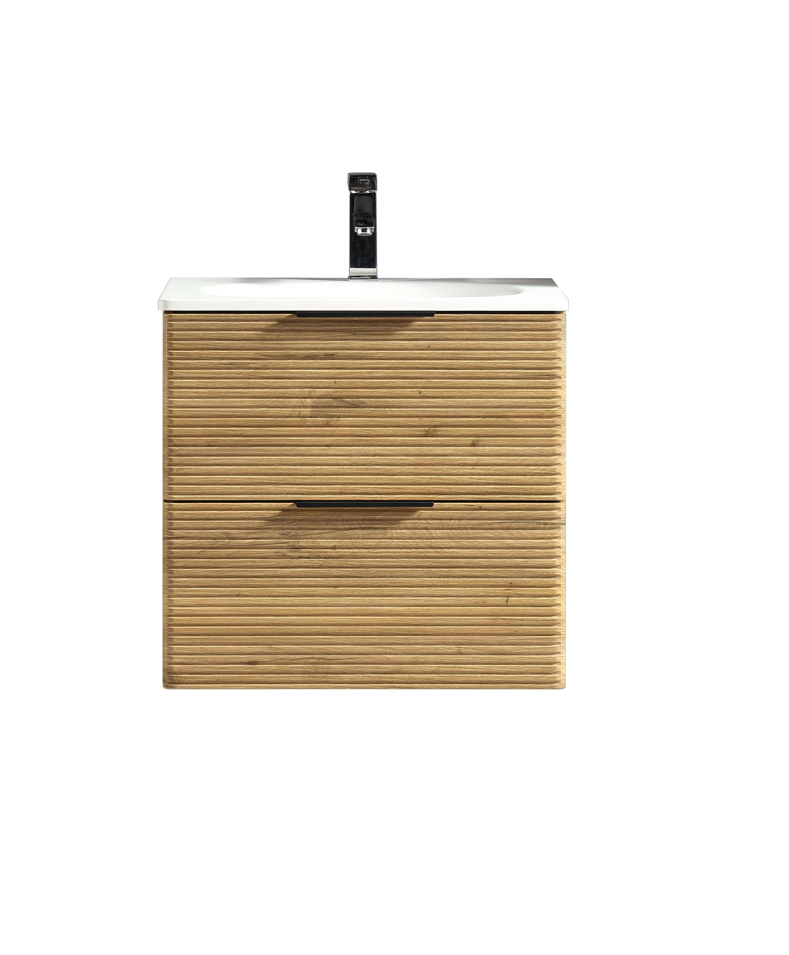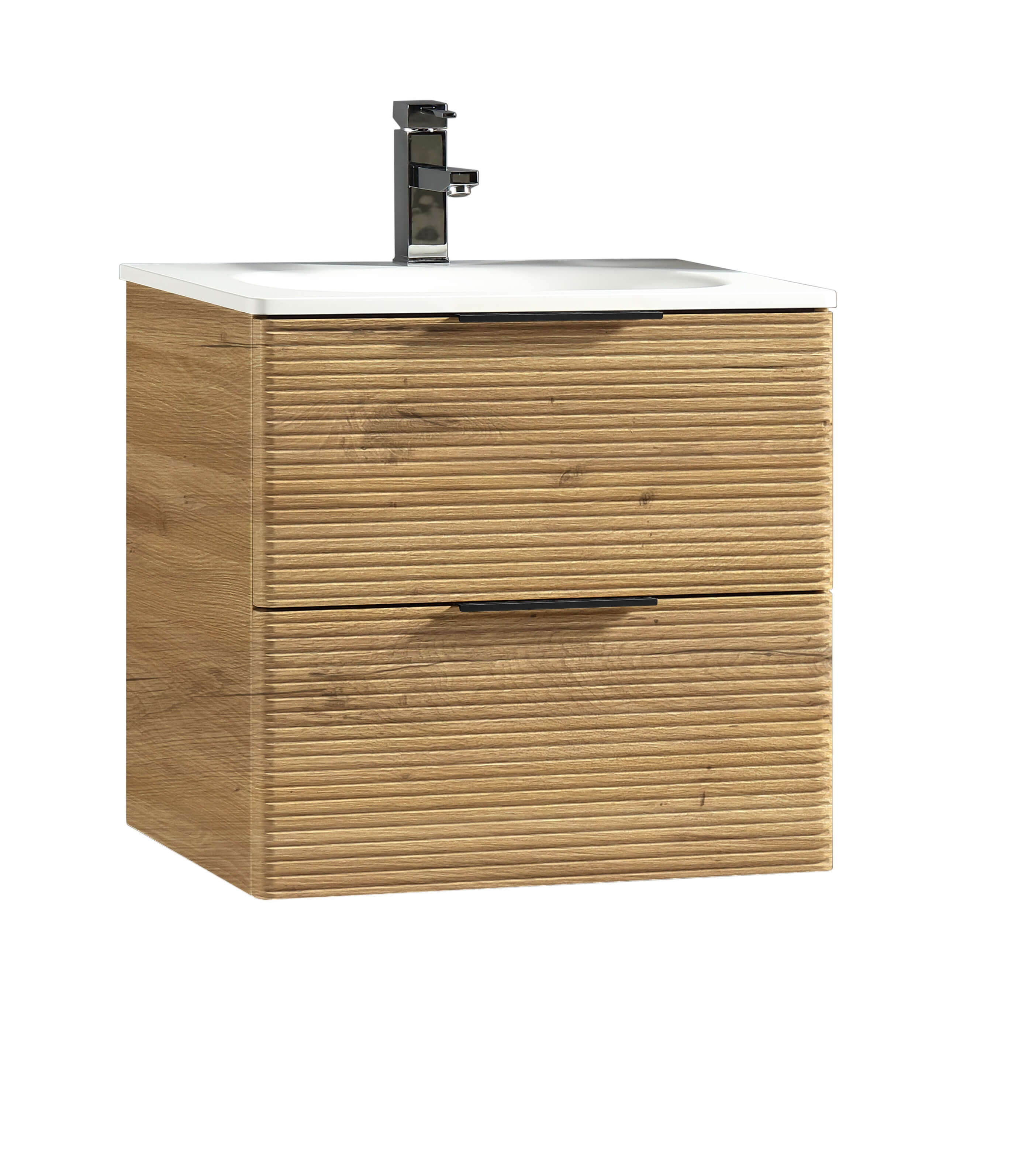 Dve duboke fioke sa soft-close mehanizmom pružaju dovoljno mesta za odlaganje svakodnevnih sitnica, kozmetike ili peškira, dok elegantne horizontalne linije doprinose osećaju urednosti.