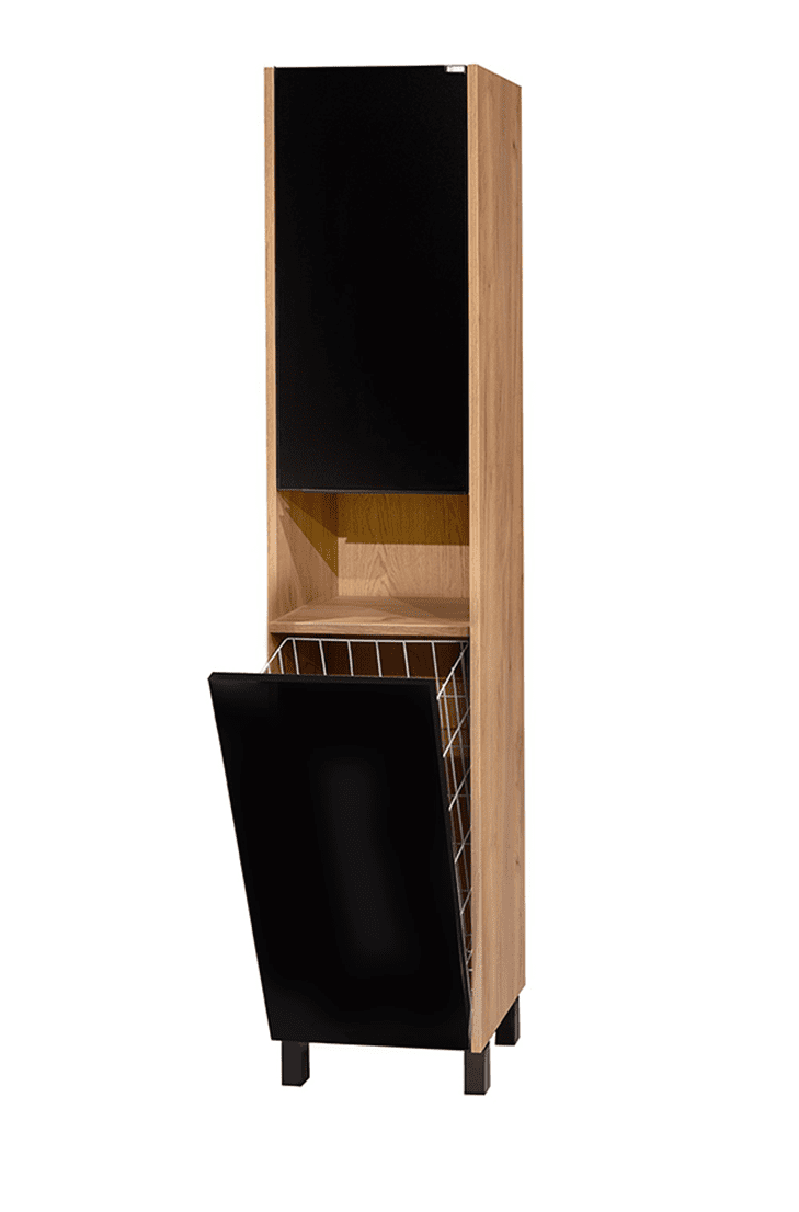 Iznad korpe za veš nalazi se dodatni zatvoreni segment, čime se prostor koristi do maksimuma bez narušavanja vizuelnog sklada.