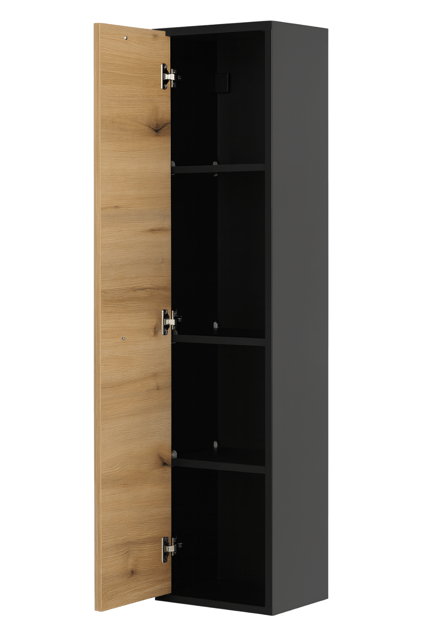 Zidna vertikala Beta Oliva/Black savršeno se kombinuje sa ormarićem Euridika 75 Oliva/Black iz iste kolekcije, stvarajući zaokružen stil i moderan ambijent.