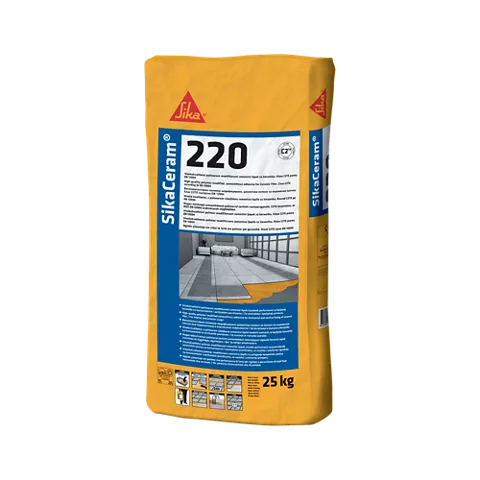 SikaCeram 220 je visokokvalitetni cementni lepak, polimerom modifikovan, dizajniran za unutrašnju i spoljašnju upotrebu.