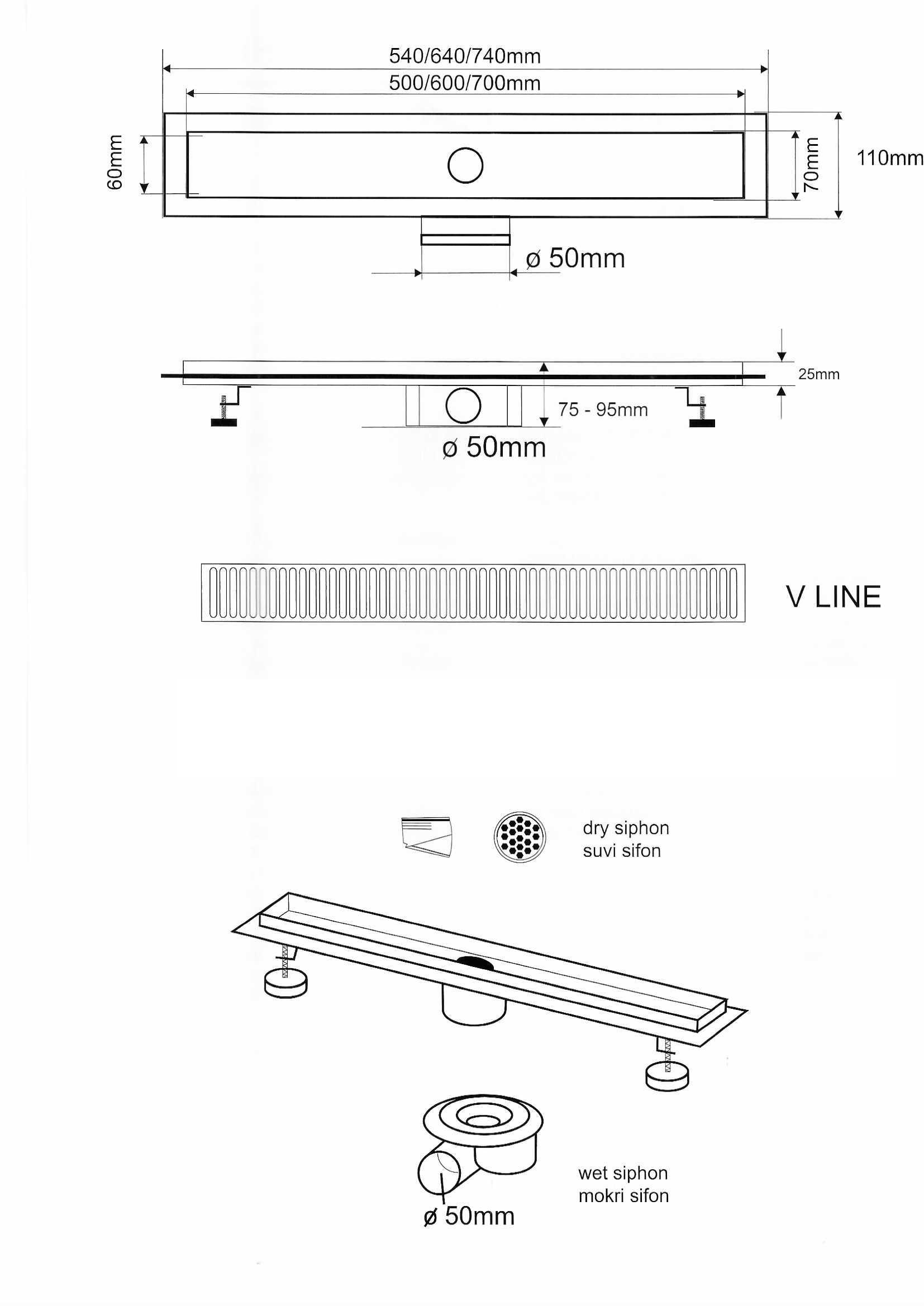 Kanalska rešetka Aqua Inox V-line 50cm predstavlja savremeno i estetski usklađeno rešenje za odvod vode u tuš kabinama.