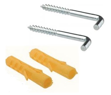 U pakovanju se nalaze dve metalne kuke i odgovarajući plastični tiplovi, spremni za direktnu ugradnju.