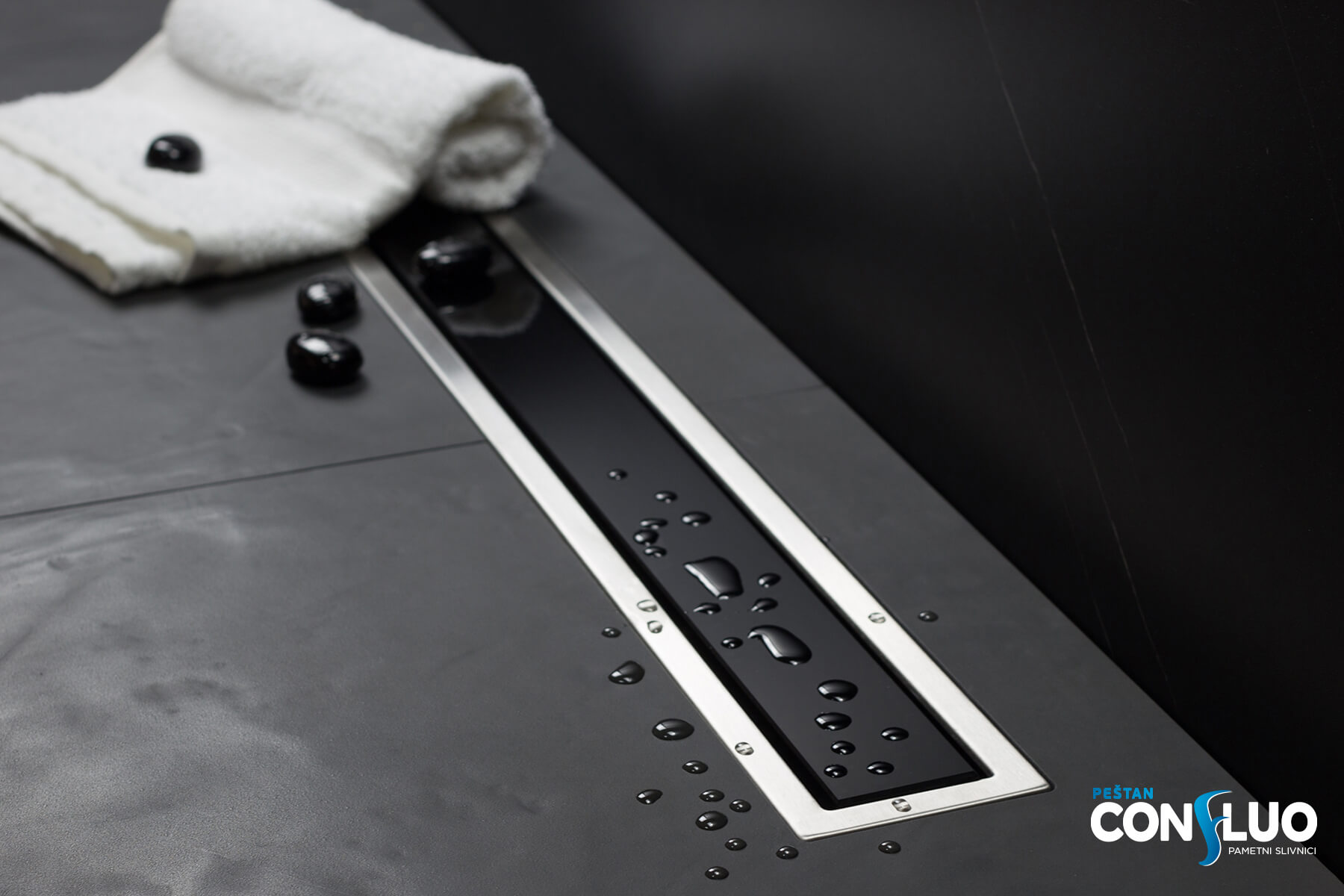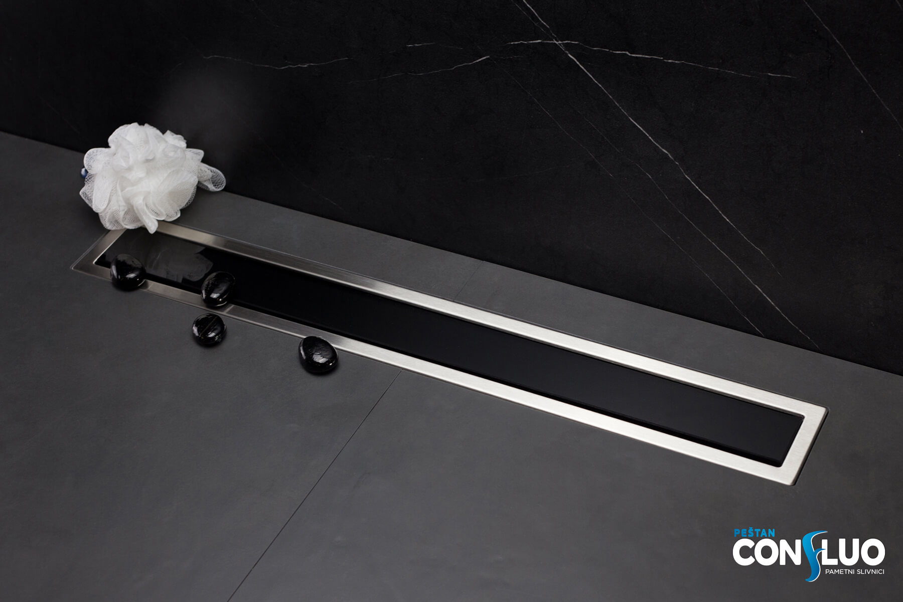 Elegantna završna obrada u crnom staklu i prohromu daje ovoj tuš kanalici prefinjen izgled, dok njena konstrukcija omogućava pouzdan odvod u svakoj zoni tuširanja.