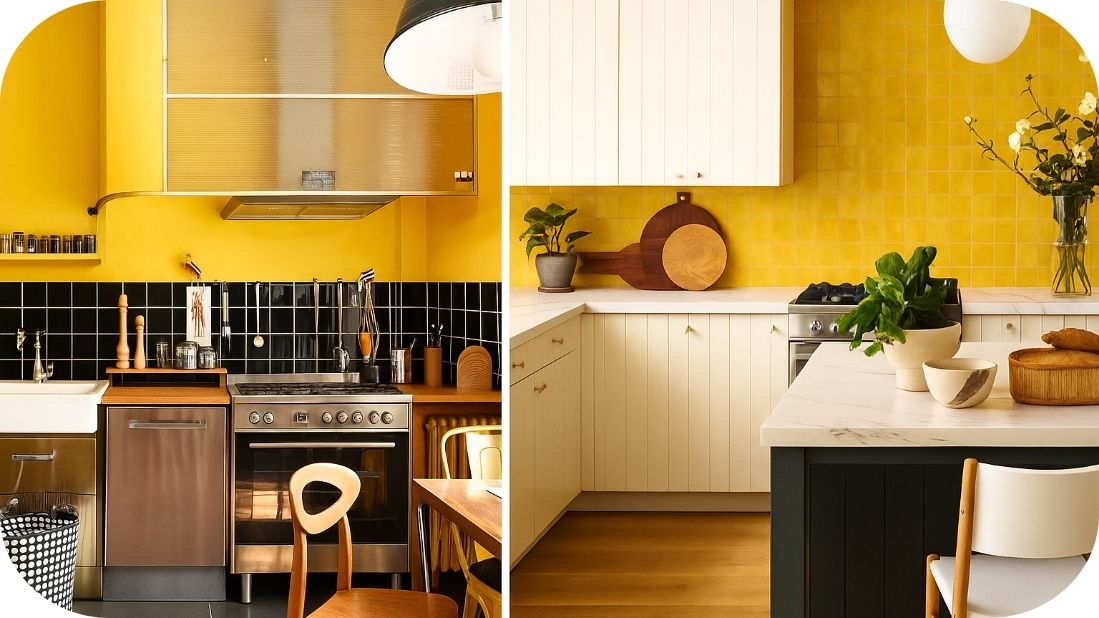 Energija boja u kuhinji - male pločice u crnoj i žutoj boji bude prostor i unose optimizam