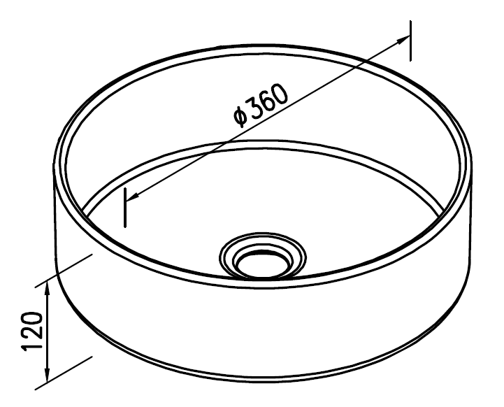 Nadgradni lavabo Elegant 36 je okrugli umivaonik prečnika 36cm i visine 12cm, dizajniran za postavljanje na ploču.