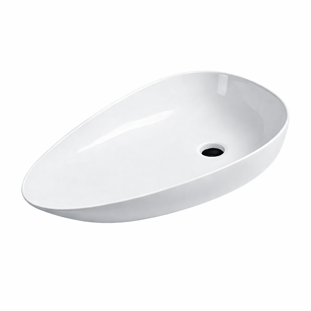 Njegov izduženi ovalni oblik deluje lagano i vizuelno čisto, dok bela sjajna završna obrada reflektuje svetlost i prostoru daje uredan, svetao izgled.