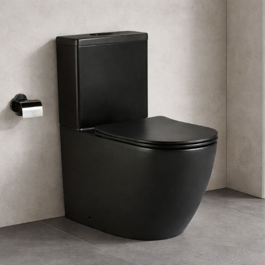 Crna mat WC šolja posebno dolazi do izražaja u kontrastu sa svetlim pločicama, bež tonovima ili mikrocement zidovima.