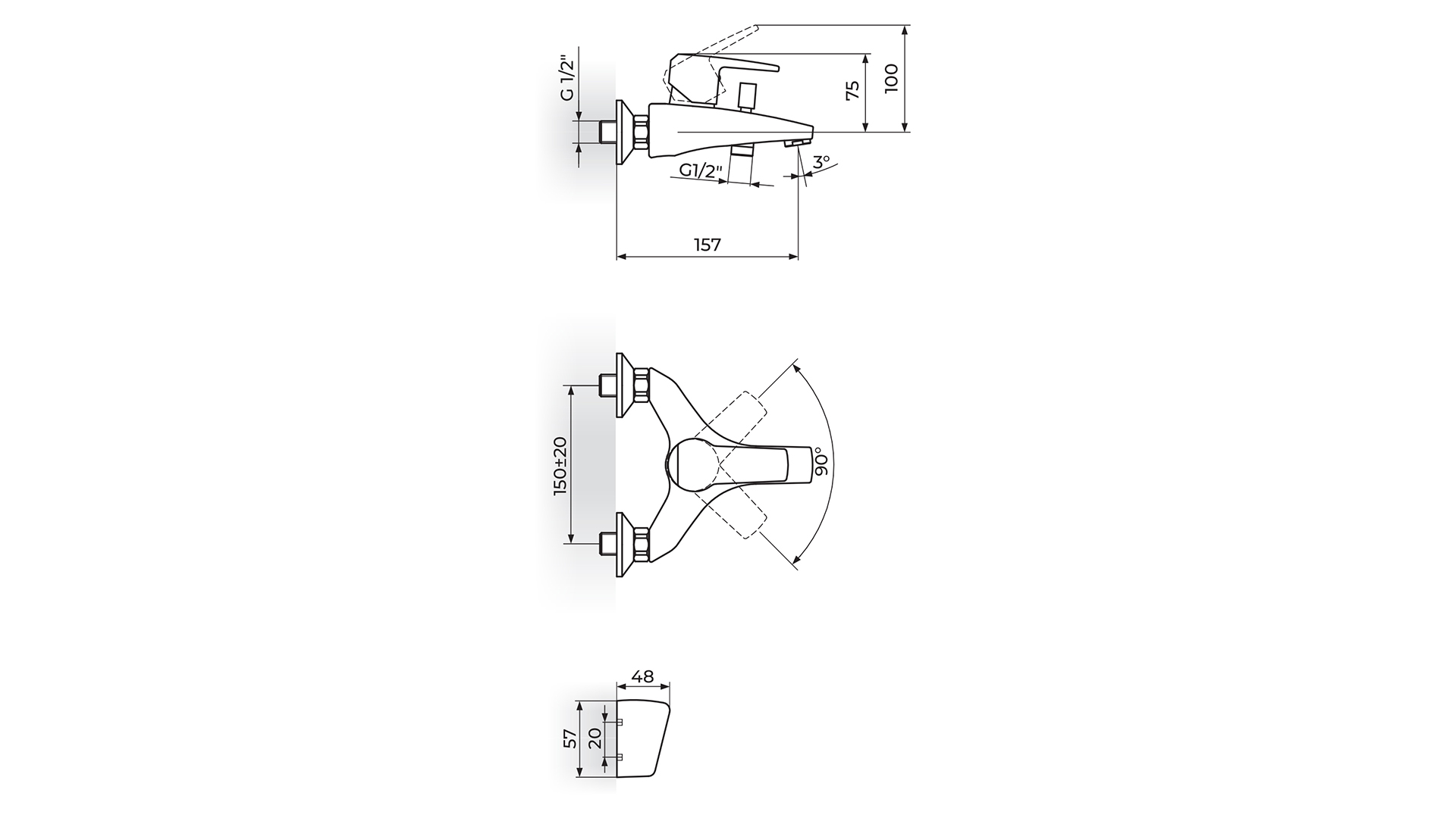 Baterija za kadu sa ručnim tušem Cubo