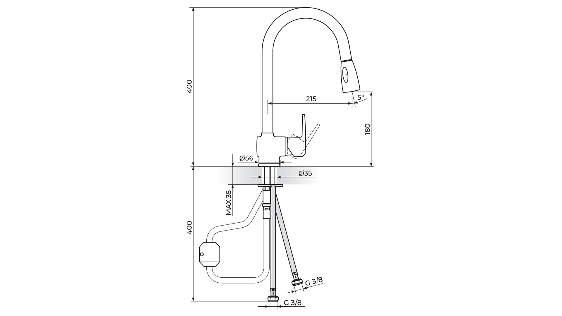 Baterija za sudoperu sa izvlačnim tušem Cubo